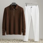 Premium Ribbed Fabric 𝗣𝗼𝗹𝗼 𝗭𝗶𝗽𝗽𝗲𝗿 𝗦𝗲𝘁(Coffee )